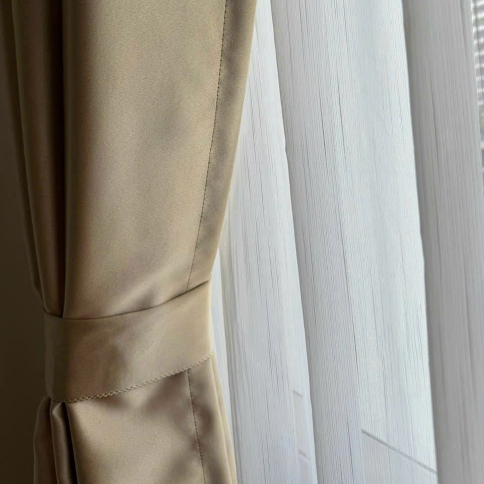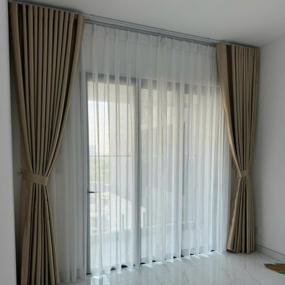 Rèm vải 2 lớp cản sáng màu vàng + voan trắng